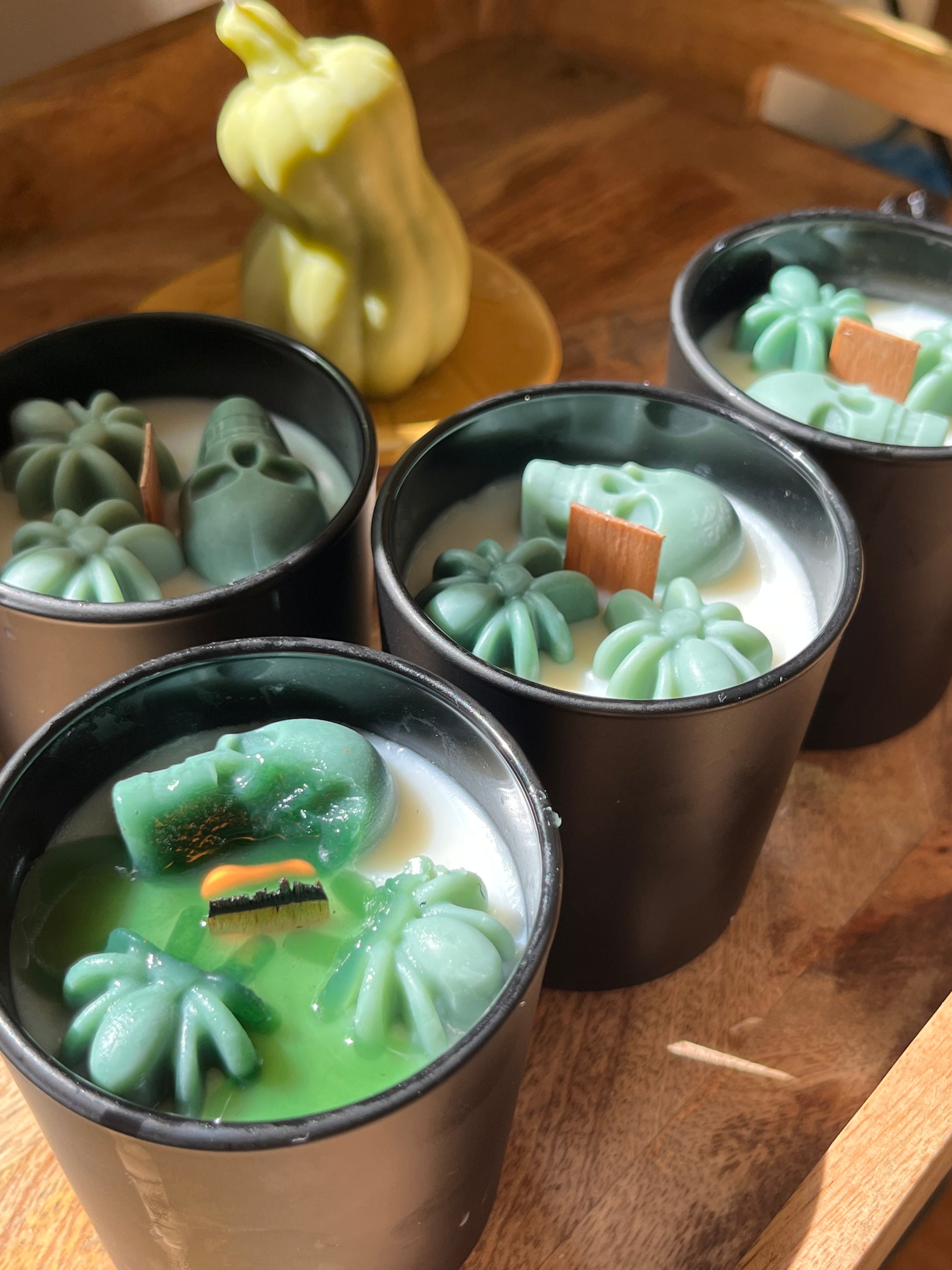 A Melodic Halloween Szójagyertya nemcsak illatélmény, hanem hangulatteremtő Halloween dekoráció is. Alkosd meg saját nyugalmad szentélyét – vagy varázsold boszorkányosan különlegessé otthonod az ünnepi szezonban!